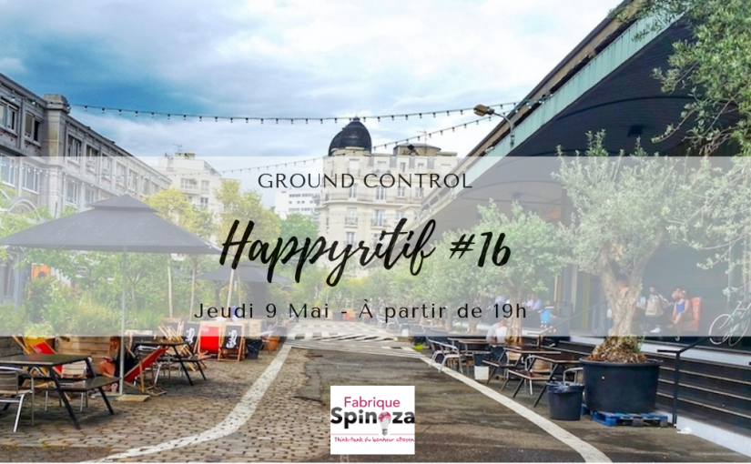– La Fabrique Spinoza vous invite à son Happyritif le jeudi 9 mai à partir de 19h au GroundControl. Venez (re)découvrir la Fabrique Spinoza, ses différents groupes, ses travaux, partager un moment convivial et pourquoi pas, vous engager à nos côtés en faveur du Bonheur Citoyen ! – Inscription obligatoire (entrée gratuite) –