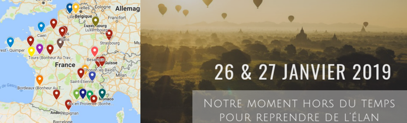 La Fabrique Spinoza est fière de compter une trentaine de communautés en France et pays francophones (Bénélux, Magreb, Québec et jusqu’à Nouméa) ! Nos Passeurs du Bonheur (lire quelques portraits ici) agissent sur des thématiques aussi variées que les Sciences du Bonheur, le Bonheur à l’Ecole, Bonheur Au Travail, Bonheur et Entrepreneuriat, Bonheur et Santé, Ville positive, Bonheur et philosophie… ils se réunissent pour échanger, débattre et formaliser des propositions, partager des outils, créer des évènements divers et variés autour du Bonheur. Vous êtes déjà bénévole actif auprès de la Fabrique Spinoza, nous vous invitons à vous inscrire aux Escapades des Passeurs ! Vous n’êtes pas encore actif mais souhaitez le devenir, accédez à la carte des Passeurs du bonheur citoyen et rejoignez notre communauté.