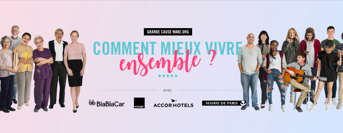 Comment créer plus de lien social ? Partant du constat qu’un français sur cinq se sent seul, que 75% des français estiment la cohésion sociale fragile et que plus de 5 millions de français sont en situation d’isolement, Make.org et ses partenaires organisent une consultation nationale sur le mieux vivre ensemble.